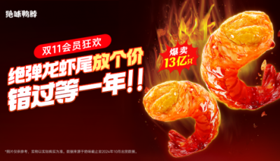 随着双11购物狂欢节的脚步越来越近,国内领先的休闲卤味品牌绝味鸭脖再次掀起美食狂潮!旗下明星产品——绝弹龙虾尾将在今年双...