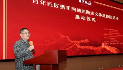 领导嘉宾启动“百年巨匠携手阿迪达斯送文体进校园”活动 摄影 李霞 2023年5月7日,由中国文学艺术基金会、《百年...